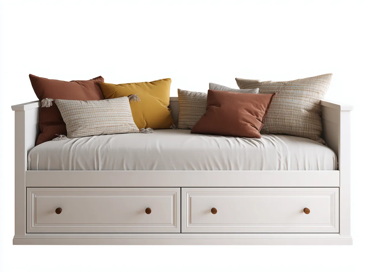 Il divano si utilizza come seduta e come letto. I cassetti inferiori integrati permettono di organizzare lo spazio in modo pratico senza compromettere l'estetica.
