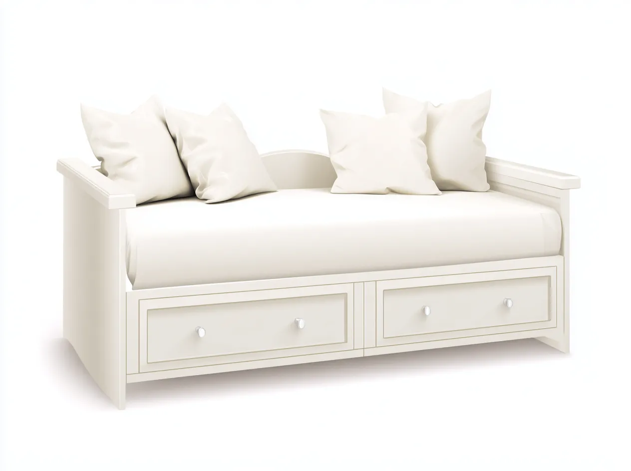 Struttura realizzata in legno con rivestimento in tessuto color bianco. Le superfici sono rifinite con cura per garantire stabilità e comfort durante l'uso quotidiano.